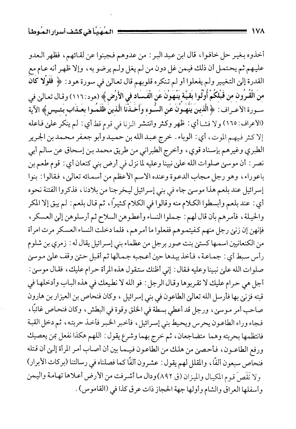 أخذوه بغير حل خافوا، قال ابن عبد البر: من عدوهم فجبنوا عن لقائهم، فظهر العدو عليهم ثم يحتمل أن ذلك فيمن غل دون من لم يغل ولم يرضو به، وإلا ظهر أنه عام مع القدرة إلى التغيير ولم يفعلوا أو لم تنكره قلوبهم قال تعالى في سورة هود: {فَلَوْلَا كَانَ مِنَ الْقُرُونِ مِنْ قَبْلِكُمْ أُولُو بَقِيَّةٍ يَنْهَوْنَ عَنِ الْفَسَادِ فِي الْأَرْضِ} [هود: 116] وقال تعالى في سورة الأعراف: {الَّذِينَ يَنْهَوْنَ عَنِ السُّوءِ وَأَخَذْنَا الَّذِينَ ظَلَمُوا بِعَذَابٍ بَئِيسٍ} الآية [الأعراف: 165] ولا فشا أي: ظهر وكثر وانتشر الزنا في قومٍ قط أي: لم ينكر على فاعله إلا كثر فيهم الموت، أي: الوباء. خرج عبد الله بن حميد وأبو جعفر محمد بن الجرير الطبري وغيرهم بإسناد قوي، وأخرج الطبراني من طريق محمد بن إسحاق عن سالم أبي نصر: أن موسى صلوات الله على نبينا وعليه لما نزل في أرض بني كنعان أي: قوم طعم بن باعوراء، وهو رجل مجاب الدعوة وعنده الاسم الأعظم من أسمائه تعالى، فقالوا: بنوا إسرائيل عند بلعم هذا موسى جاء في بني إسرائيل ليخرجنا من بلادنا، فذكروا الفتنة نحوه أي: عند بلعم وأبسطوا الكلام منه وقالوا في الكلام كثيرًا، ثم قال بلعم: لم يبق إلا المكر والحيلة، فأمرهم بأن قال لهم: جملوا النساء وأعطوهن السلاح ثم أرسلوهن إلى العسكر، فإنهن إن زنى رجل منهم كفيتموهم ففعلوا ما أمرهم، فلما دخلت النساء العسكر مرت امرأة من الكنعانيين اسمها كستى بنت صور برجل من عظماء بني إسرائيل يقال له: زمري بن شلوم رأس سبط أي: جماعة، فأخذ بيدها حين أعجبه جمالها ثم أقبل حتى وقف على موسى صلوات الله على نبينا وعليه فقال: إني أظنك ستقول هذه المرأة حرام عليك، فقال موسى: أجل هي حرام عليك لا تقربوها وقال الرجل: فوالله لا نطيعك في هذه الباب وأدخلها في قبته فزنى بها فأرسل الله تعالى الطاعون في بني إسرائيل، وكان فنحاص بن العيزار بن هارون صاحب أمر موسى، ورجل قد أعطي بسطة في الخلق وقوة في البطش، وكان فنحاص غائبًا، فجاء وراء الطاعون يحرس ويحيط بني إسرائيل، فأخبر الخبر فأخذ حربته، ثم دخل القبة فانتظمها بحربته وهما متضاجعان، ثم خرج بهما وشرع يقول: اللهم هكذا نفعل بمن يعصيك ورفع الطاعون، فأحصى من هلك من الطاعون فيما بين أن أصاب أمر المرأة إلى أن قتله فنحاص سبعون ألفًا، والمقلل لهم يقول: عشرون ألفًا كما فصلناه في رسالتنا (بركات الأبرار) ولا نَقَصَ قوم المكيال والميزان (ق 892) وقال ما أشرفت من الأرض أعلاها تهامة واليمن وأسفلها العراق والشام وأولها جهة الحجاز ذات عرق كذا في (القاموس).