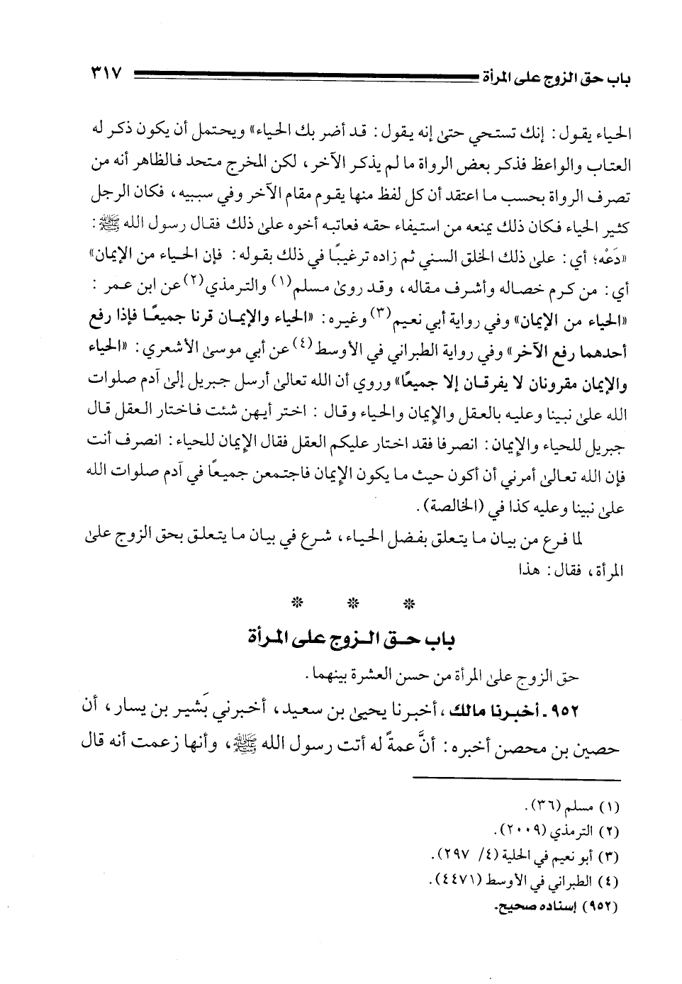 لما فرغ من بيان ما يتعلق بفضل الحياء، شرع في بيان ما يتعلق بحق الزوج على المرأة، فقال: هذا