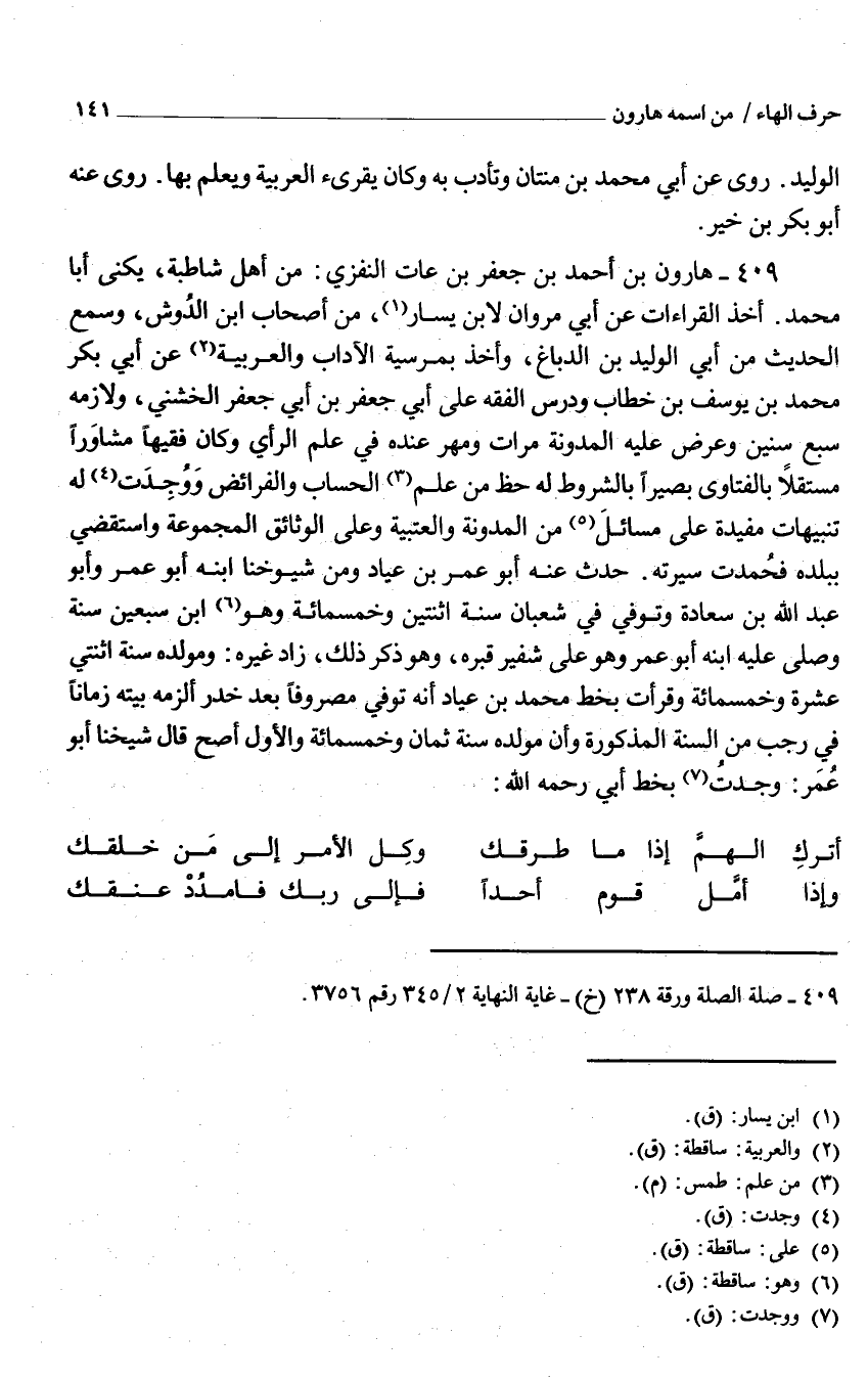 409 - هَارُون بْن أَحْمَد بْن جَعْفَر بْن عَاتٍ النفزي