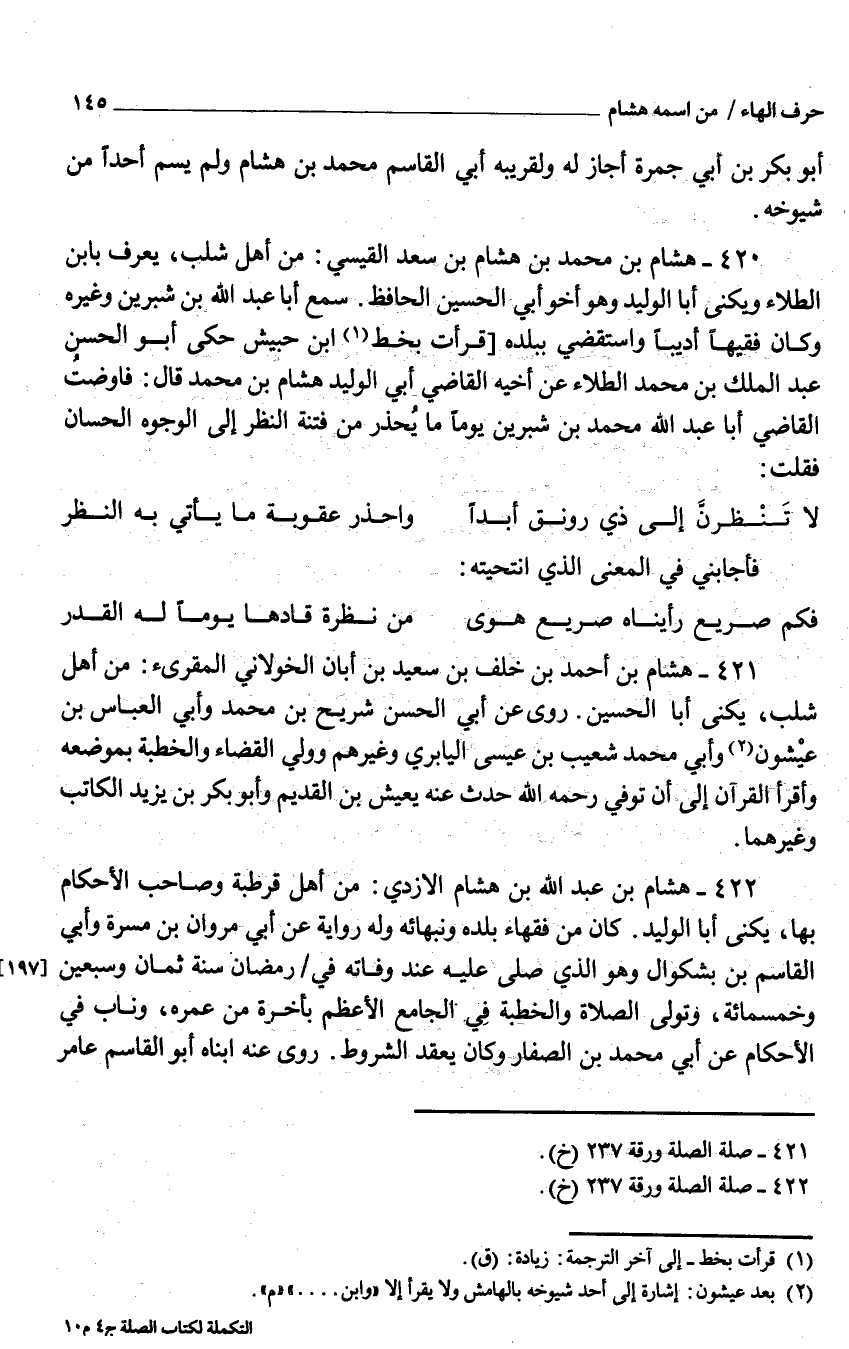 421 - هِشَام بْن أَحْمَد بْن خَلَف بْن سعيد بن أبان الْخَولَانِيّ المقرىء
