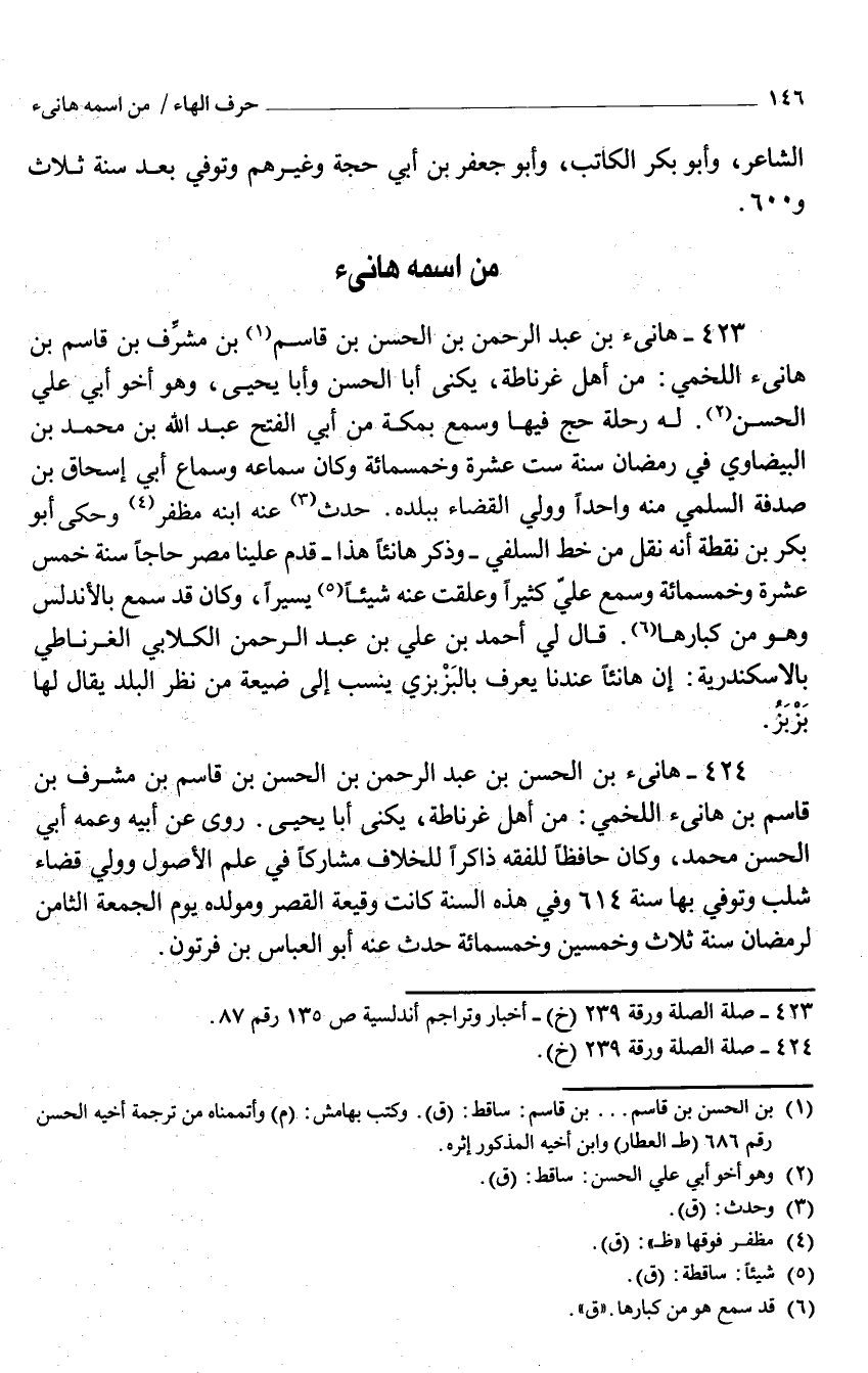 423 - هانىء بْن عَبْد الرَّحْمَن بْن الْحَسَن بْن قَاسم بْن مشرِّف بْن قَاسم بن هانىء اللَّخْميّ