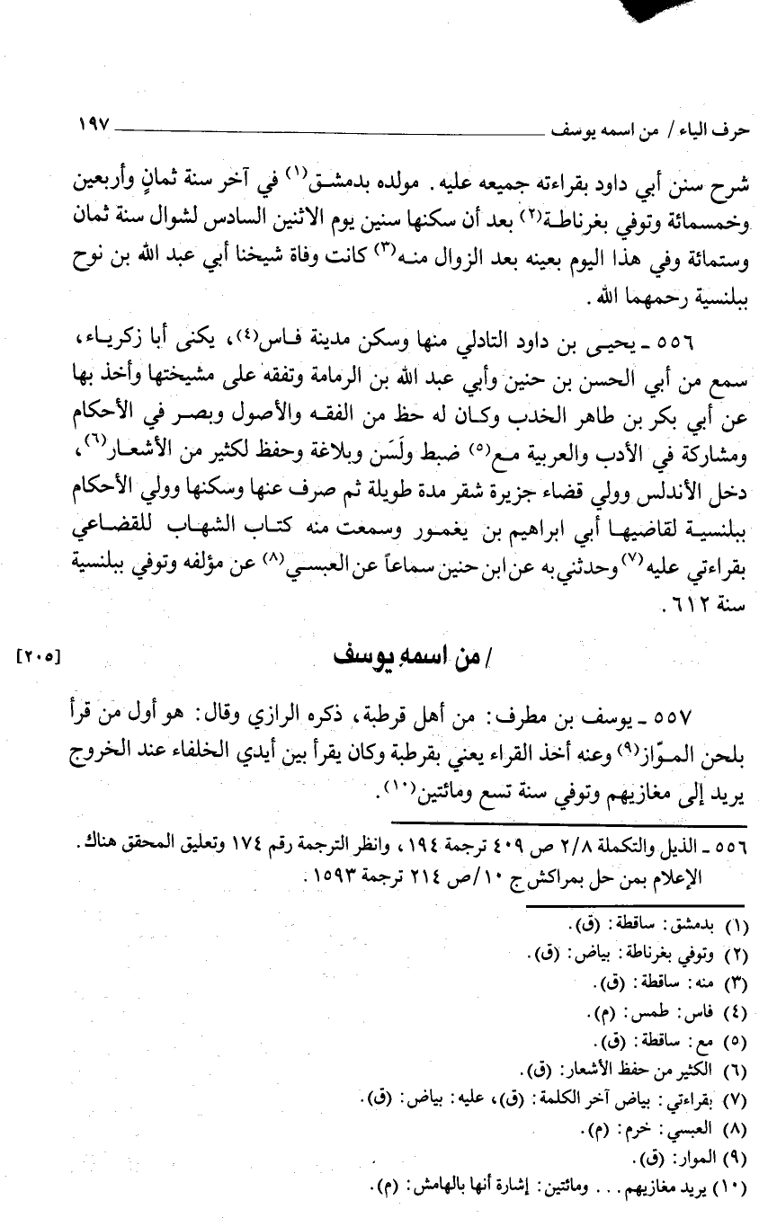 556 - يحيى بن دَاوُد التادلي مِنْهَا وَسكن مَدِينَة فاس يكنى أَبَا زَكَرِيَّاء سمع من أبي الْحسن بن وَأبي عبد الله بن الرمامة وتفقه على مشيختها وَأخذ بهَا عَن أبي بكر بن طَاهِر الخدب وَكَانَ لَهُ حَظّ من الْفِقْه وَالْأُصُول وبصر فِي الْأَحْكَام ومشاركة فِي الْأَدَب والعربية مَعَ ضبط ولسن وبلاغة وَحفظ كثير من الْأَشْعَار دخل الأندلس وَولي قَضَاء جَزِيرَة شقر مُدَّة طَوِيلَة ثمَّ صرف عَنْهَا وسكنها وَولي الْأَحْكَام ببلنسية لقاضيها أبي إِبْرَاهِيم بن يغمور وَسمعت مِنْهُ كتاب الشهَاب للقضاعي بِقِرَاءَتِي عَلَيْهِ وحَدثني بِهِ عَن ابْن حنين سَمَاعا عَن الْعَبْسِي عَن مُؤَلفه وَتُوفِّي ببلنسية سنة 612