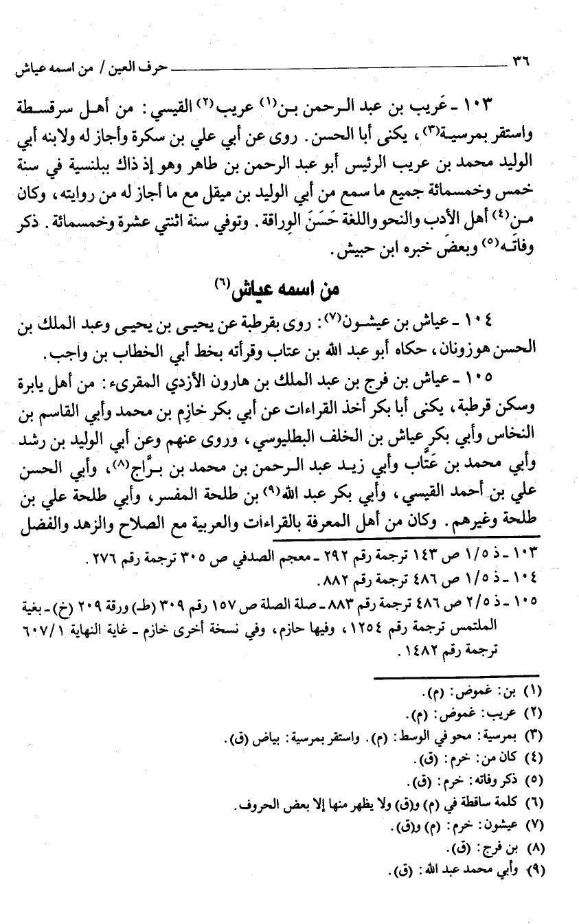 104 - عَيَّاش بن عيشون روى بقرطبة عَن يحيى بن يحيى وَعبد الْملك بن الْحسن هوزونان حَكَاهُ أَبُو عَبْد اللَّه بْن عتاب وقرأته بِخَط أبي الخَطَّاب بْن وَاجِب