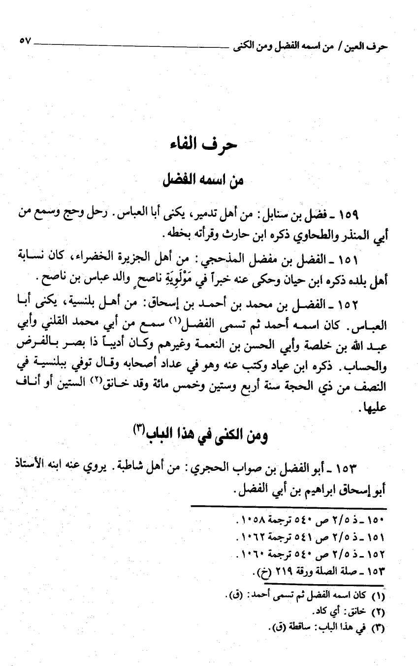 159 - فضل بن سنابل من أهل تدمير يكنى أَبَا الْعَبَّاس رَحل وَحج وَسمع من أبي الْمُنْذر والطَّحَاوِي ذكره ابْن حَارِث وقرأته بِخَطِّهِ.