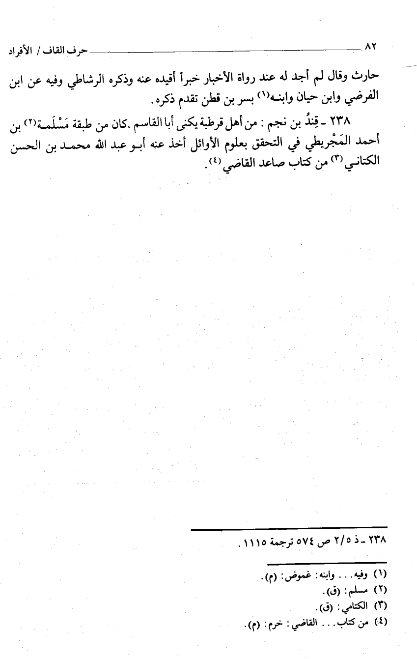 حَارِث وَقَالَ لم أجد لَهُ عِنْد رُوَاة الْأَخْبَار خَبرا أقيده عَنهُ وَذكره الرشاطي وَفِيه عَن ابْن الفرضي وَابْن حَيَّان وَابْنه بسر بن قطن تقدم ذكره