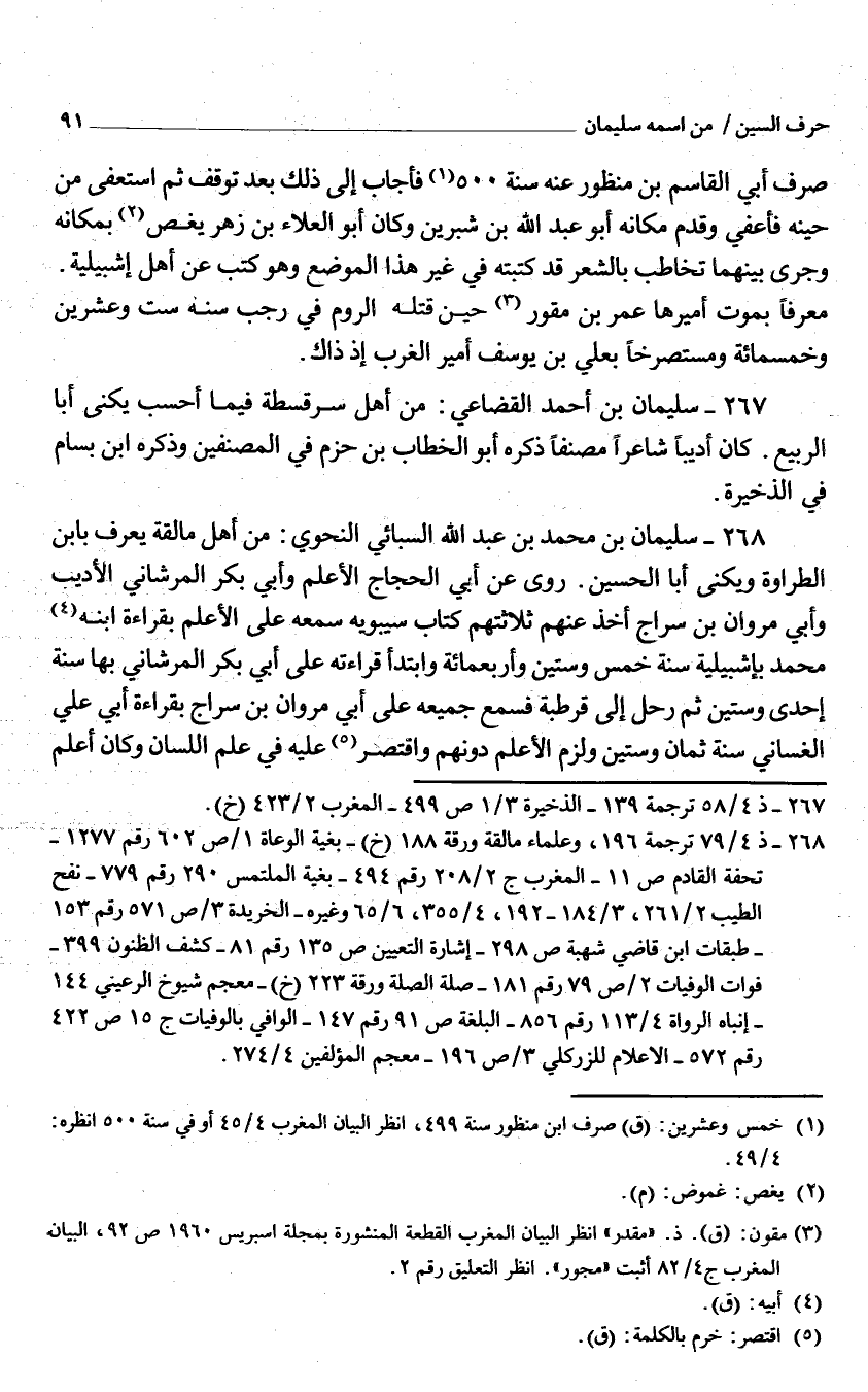 267 - سُلَيْمَان بن أَحْمد الْقُضَاعِي من أهل سرقسطة فِيمَا أَحسب يكنى أَبَا الرّبيع كَانَ أديبا شَاعِرًا مصنفا ذكره أَبُو الْخطاب بن حزم فِي المصنفين وَذكره ابْن بسام فِي الذَّخِيرَة