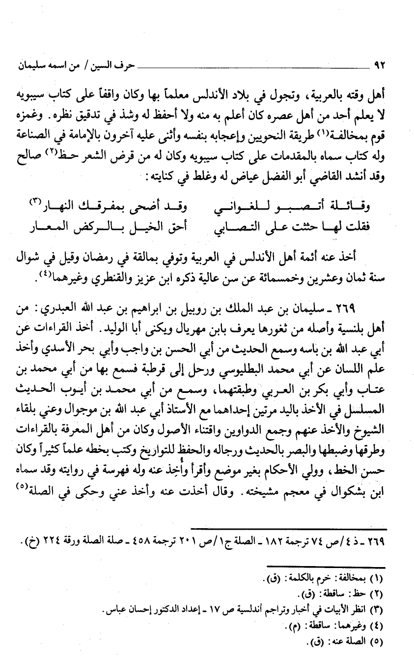 أهل وقته بِالْعَرَبِيَّةِ وتجول فِي بِلَاد الأندلس معلما بهَا وَكَانَ وَاقِفًا على كتاب سِيبَوَيْهٍ لَا يعلم أحد من أهل عصره كَانَ أعلم بِهِ مِنْهُ وَلَا أحفظ لَهُ وشذ فِي تدقيق نظره وغمزه قوم بمخالفة طَريقَة النَّحْوِيين وإعجابه بِنَفسِهِ وَأثْنى عَلَيْهِ آخَرُونَ بِالْإِمَامَةِ فِي الصِّنَاعَة وَله كتاب سَمَّاهُ بالمقدمات على كتاب سِيبَوَيْهٍ وَكَانَ لَهُ من قرض الشّعْر حَظّ صَالح وَقد أنْشد القَاضِي أَبُو الْفضل عِيَاض لَهُ وَغلط فِي كنايته