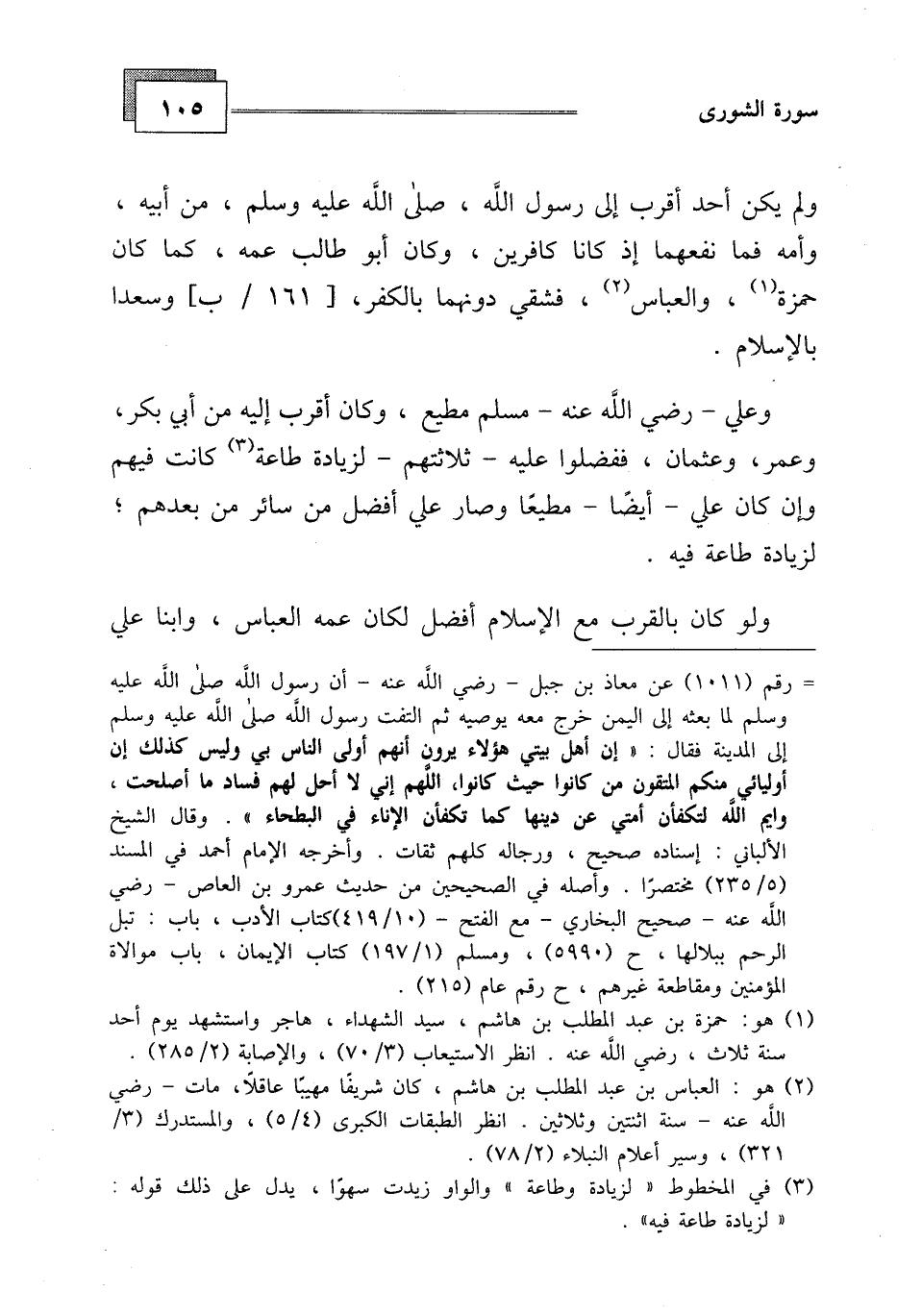 ولو كان بالقرب مع الإسلام أفضل لكان عمه العباس، وابنا علي