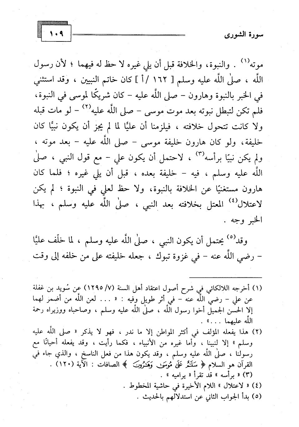 وقد يحتمل أن يكون النبي، صلى الله عليه وسلم، لما خلف عليًّا