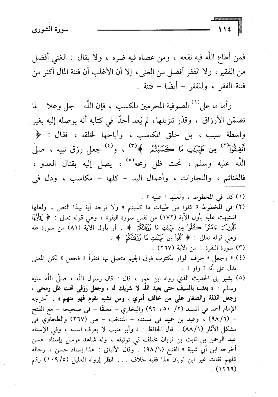 وأما ما عليه الصوفية الحرمين للكسب، فإن الله - جل وعلا - لا