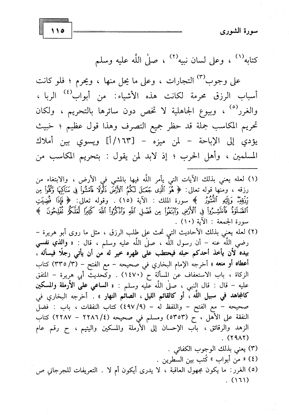 تحريم المكاسب جملة قد حظر جميع التصرف وهذا قول عظيم، خبيث