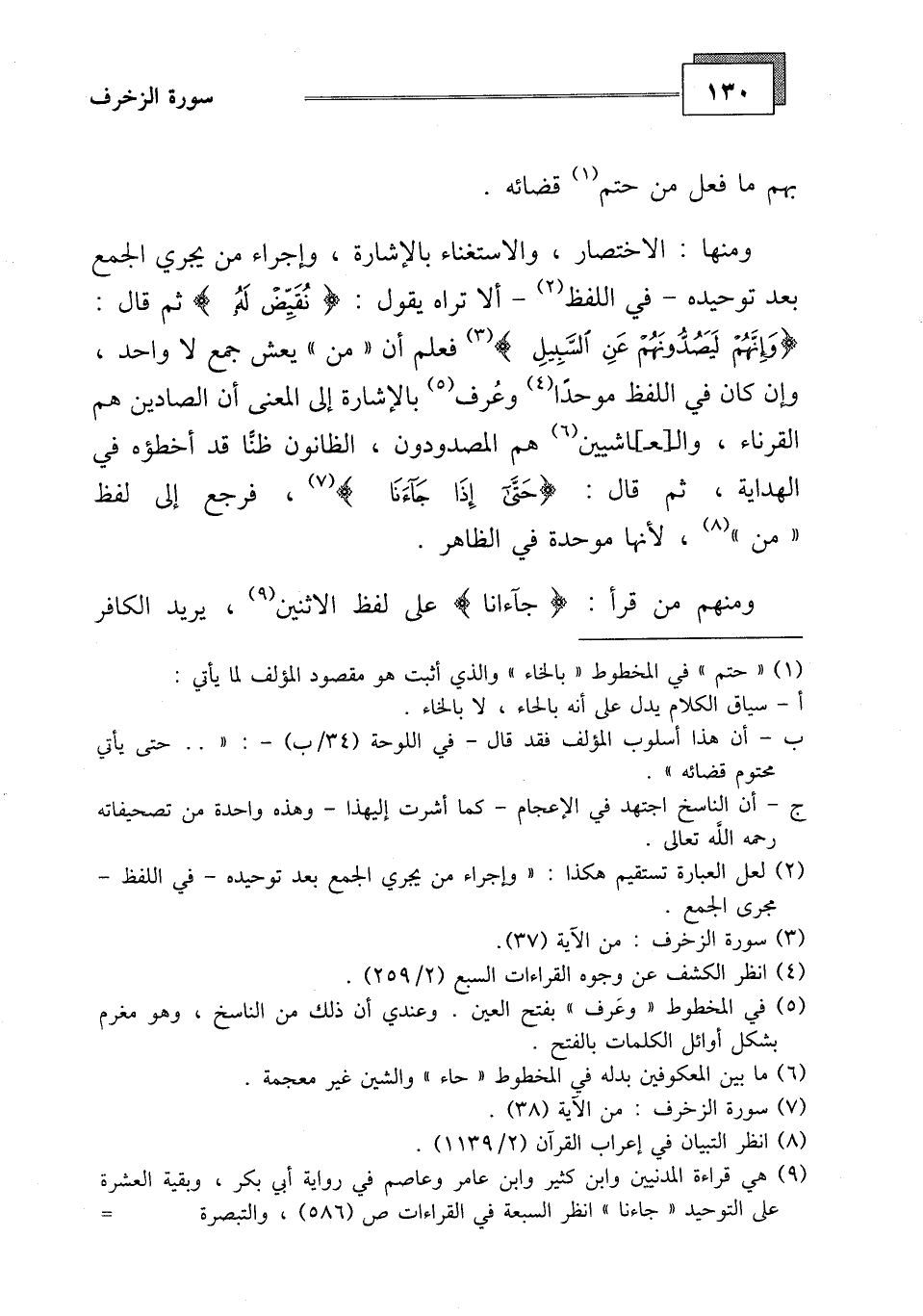 ثم قال: (وَإِنَّهُمْ لَيَصُدُّونَهُمْ عَنِ السَّبِيلِ) ، فعلم أن " من " يعش جمع لا واحد، وإن كان في اللفظ موحدًا وعُرف بالإشارة إلى المعنى أن الصادين هم