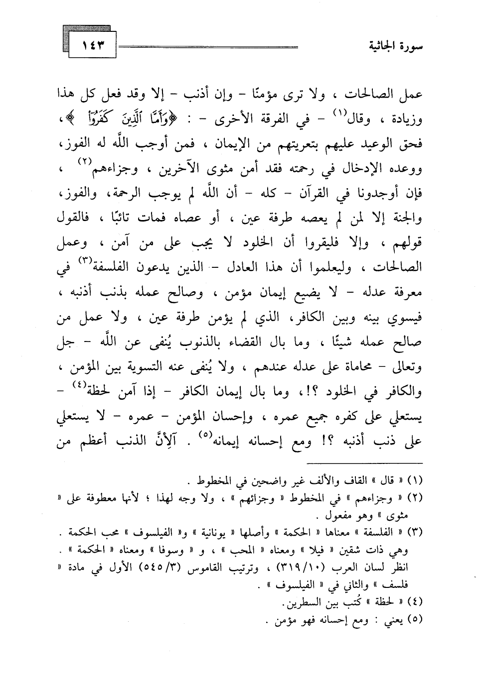 الصالحات، وليعلموا أن هذا العادل - الذين يدعون الفلسفة في