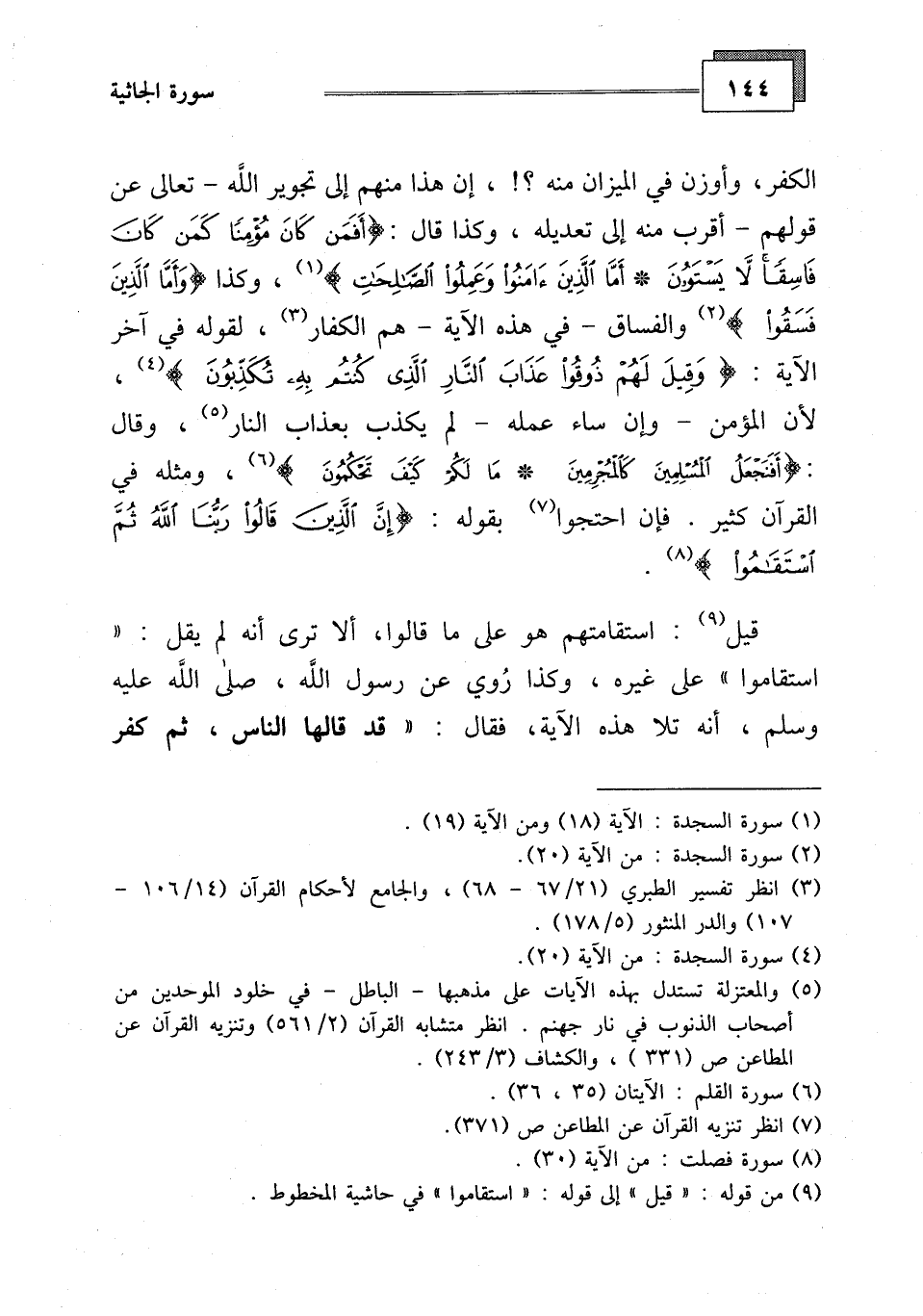 الكفر، وأوزن في الميزان منه؟! ، إن هذا منهم إلى تجوير الله - تعالى عن