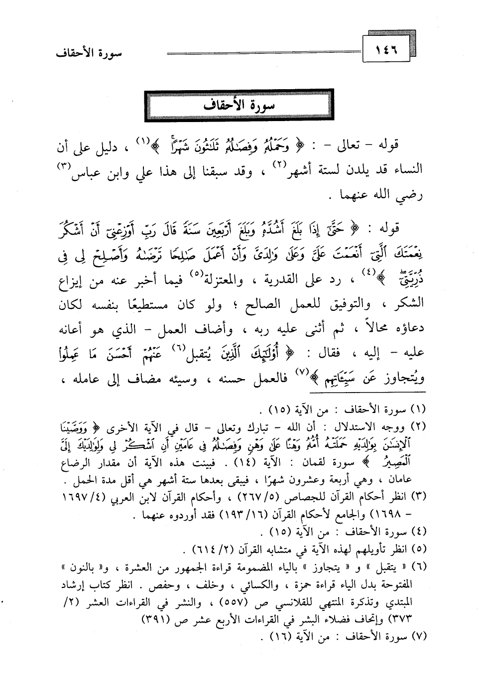 قوله - تعالى -: (حَمَلَتْهُ أُمُّهُ كُرْهًا وَوَضَعَتْهُ كُرْهًا وَحَمْلُهُ وَفِصَالُهُ ثَلَاثُونَ شَهْرًا) .