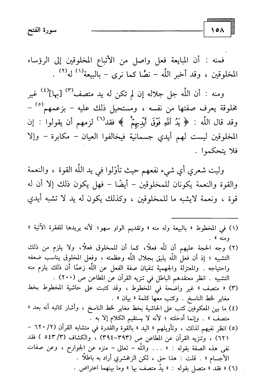 وقد قال الله: (يَدُ اللَّهِ فَوْقَ أَيْدِيهِمْ) فقد لزمهم أن يقولوا: إن