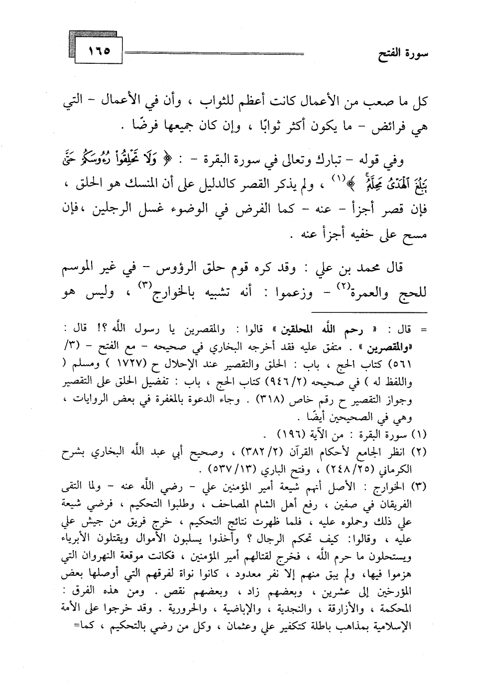 للحج والعمرة - وزعموا: أنه تشبيه بالخوارج، وليس هو