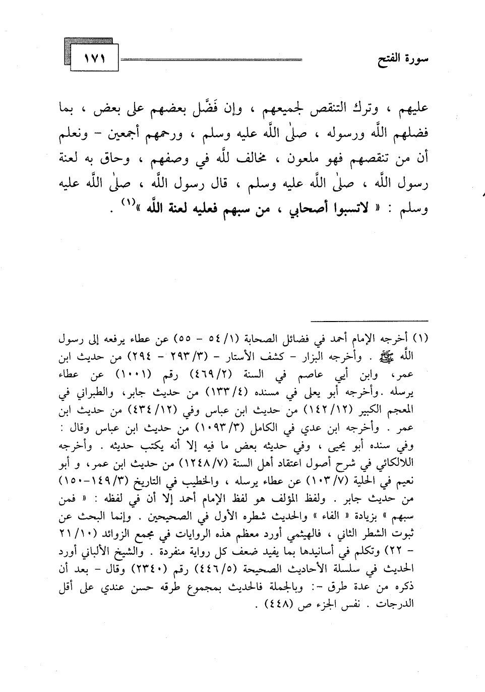 وسلم: " لا تسبوا أصحابي، من سبهم فعليه لعنة الله ".
