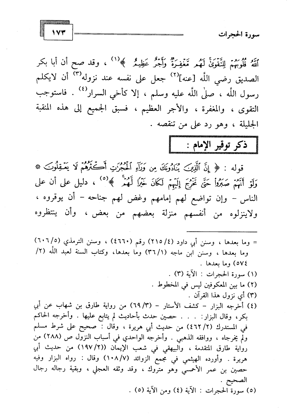 قوله: (إِنَّ الَّذِينَ يُنَادُونَكَ مِنْ وَرَاءِ الْحُجُرَاتِ أَكْثَرُهُمْ لَا يَعْقِلُونَ (4) وَلَوْ أَنَّهُمْ صَبَرُوا حَتَّى تَخْرُجَ إِلَيْهِمْ لَكَانَ خَيْرًا لَهُمْ)
