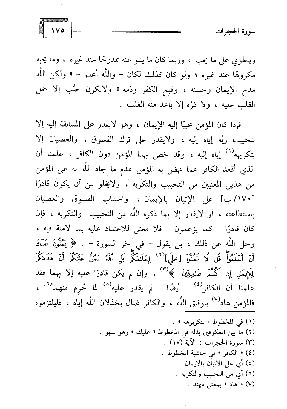 مكروهًا عند غيره، ولو كان كذلك لكان - والله أعلم - " ولكن اللَّه مدح الإيمان وحسنه، وقبح الكفر وذمه " ولا يكون حبَّب إلا حمل