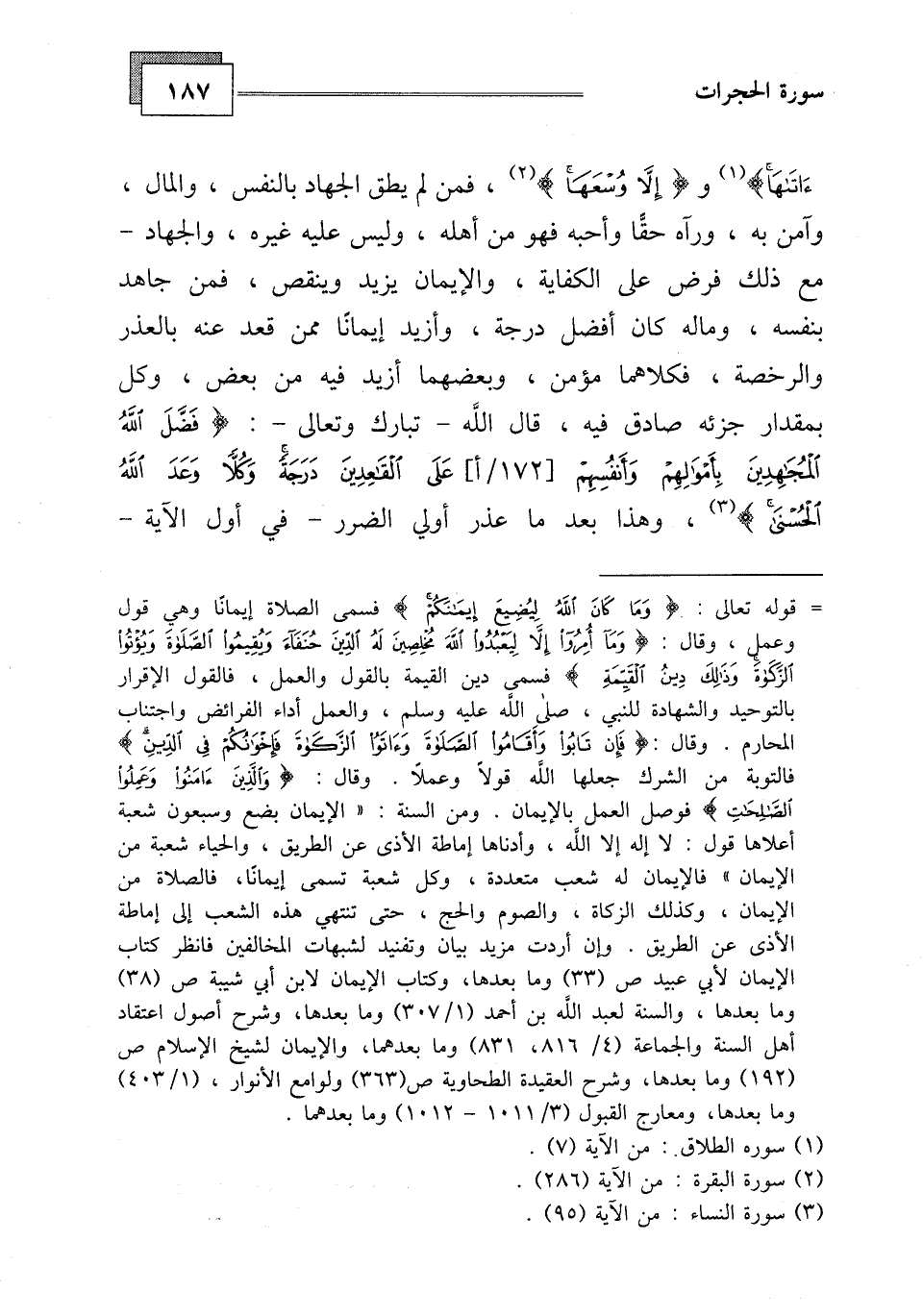 بمقدار جزئه صادق فيه، قال الله - تبارك وتعالى -: (فَضَّلَ اللَّهُ الْمُجَاهِدِينَ بِأَمْوَالِهِمْ وَأَنْفُسِهِمْ عَلَى الْقَاعِدِينَ دَرَجَةً وَكُلًّا وَعَدَ اللَّهُ الْحُسْنَى) ،