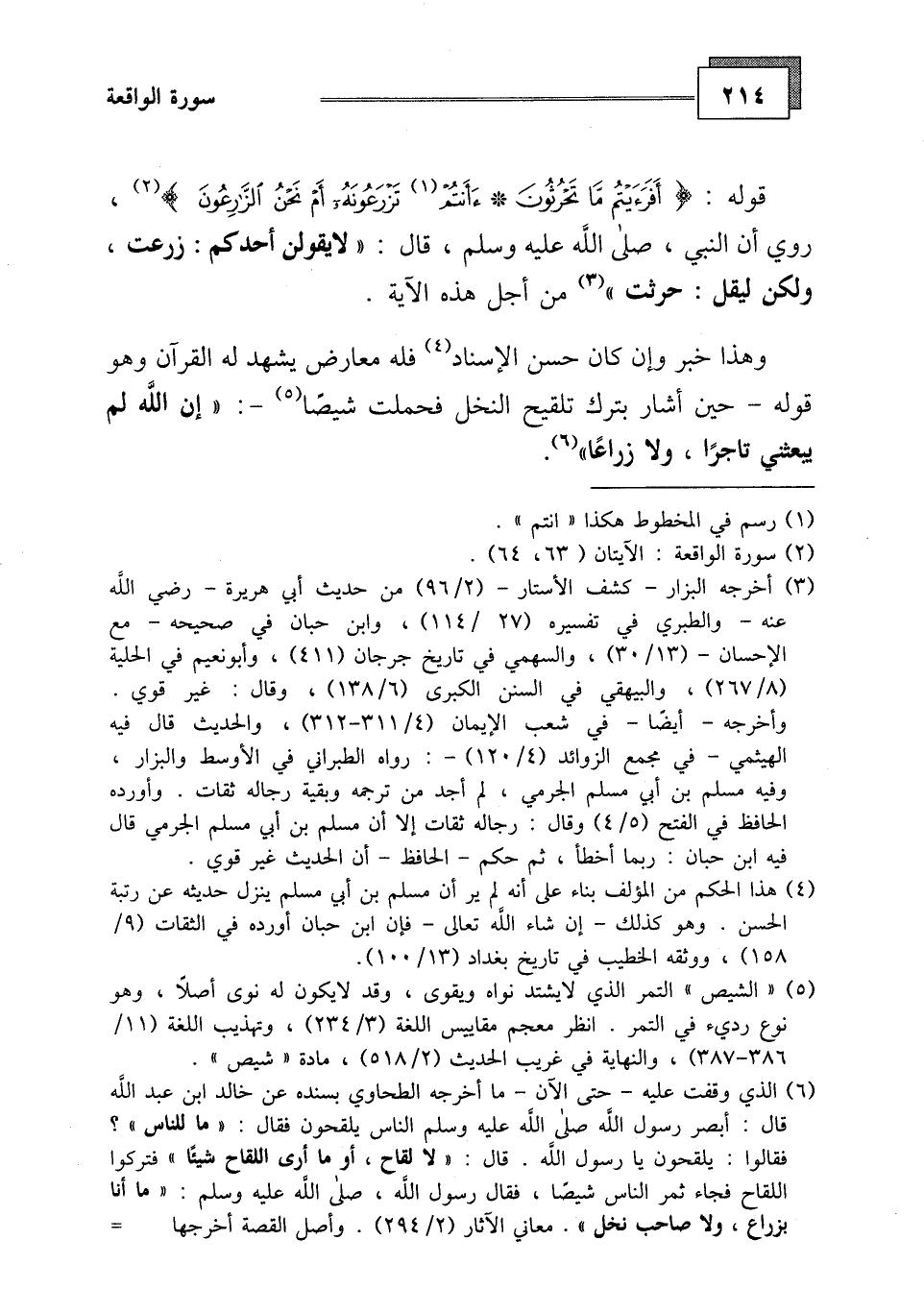 روي أن النبي، صلى الله عليه وسلم، قال: " لا يقولن أحدكم: زرعت.
