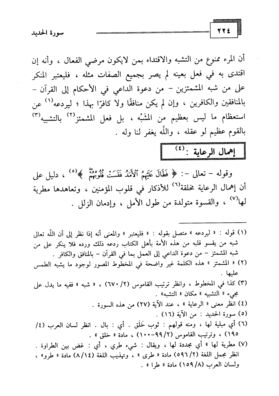 دليل على أن إهمال الرعاية مخلقة للأذكار في قلوب المؤمنين، وتعاهدها مطرية، والقسوة متولدة من طول الأمل، وإدمان الزلل