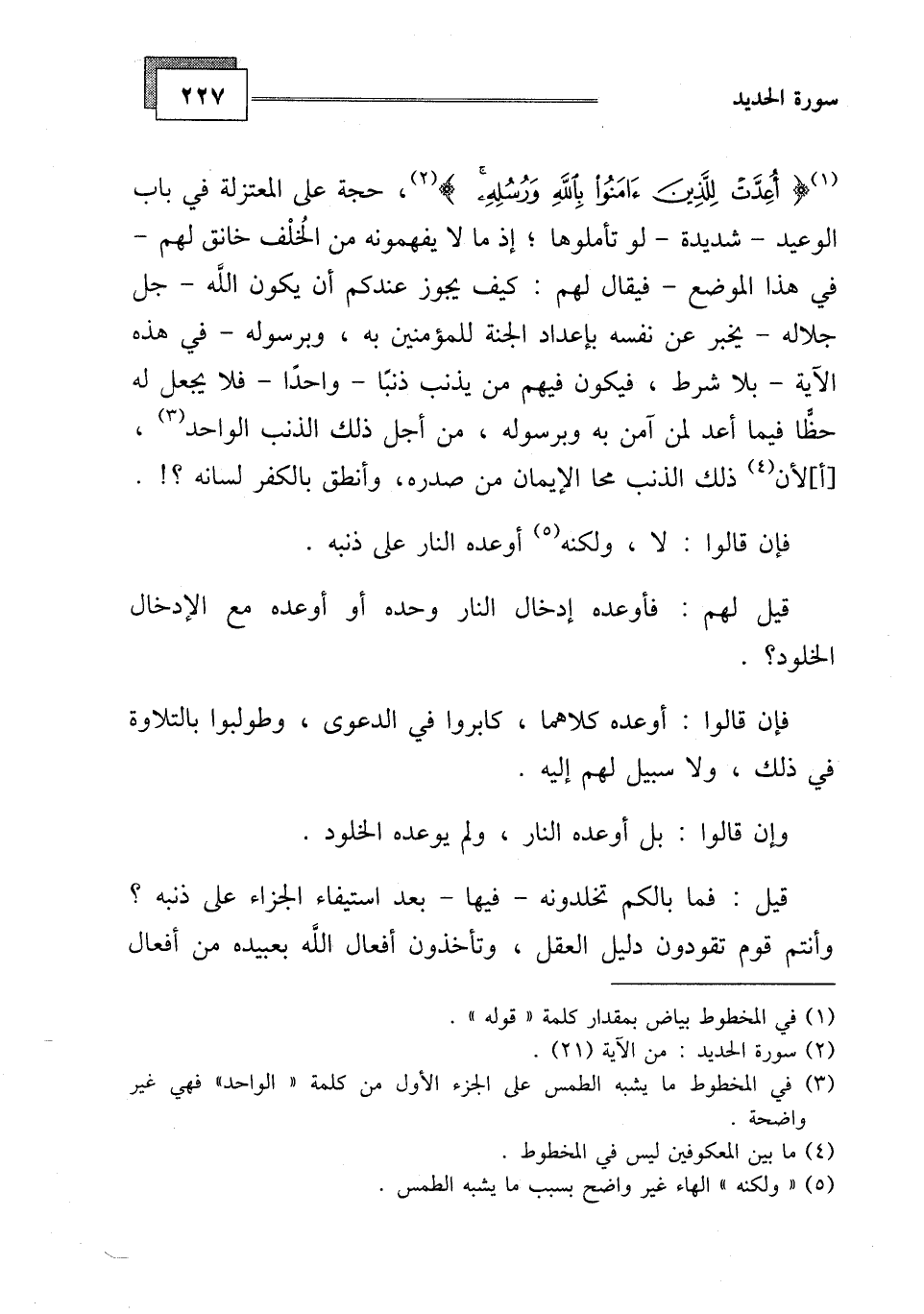 حجة على المعتزلة في باب الوعيد - شديدة - لو تأملوها، إذ ما لا يفهمونه من الخُلْف خانق لهم -