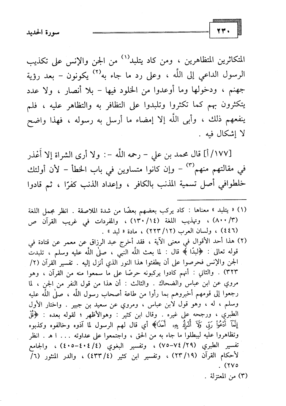 قال محمد بن علي - رحمه الله -: ولا أرى الشراة إلا أَعْذر