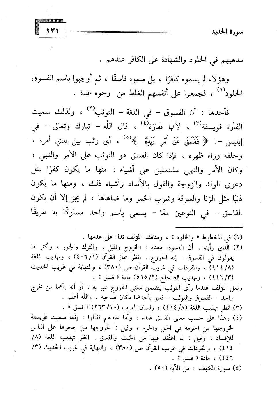 وهؤلاء لم يسموه كافرًا، بل سموه فاسقا، ثم أوجبوا باسم الفسوق