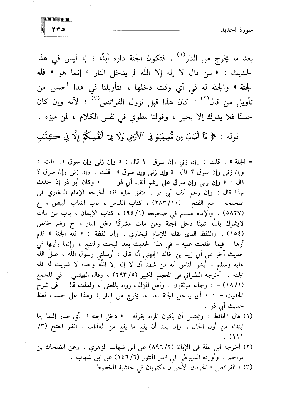 قوله: (مَا أَصَابَ مِنْ مُصِيبَةٍ فِي الْأَرْضِ وَلَا فِي أَنْفُسِكُمْ إِلَّا فِي كِتَابٍ مِنْ قَبْلِ أَنْ نَبْرَأَهَا إِنَّ ذَلِكَ عَلَى اللَّهِ يَسِيرٌ (22)