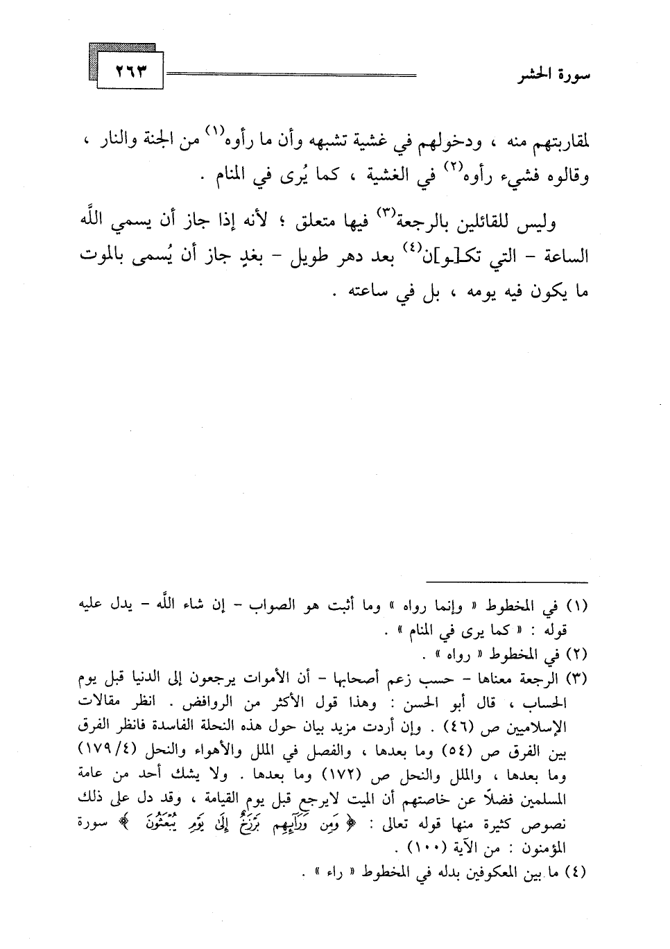 وليس للقائلين بالرجعة فيها متعلق، لأنه إذا جاز أن يسمي اللَّه الساعة - التي تكون بعد دهر طويل - بغدٍ جاز أن يُسمى بالموت
