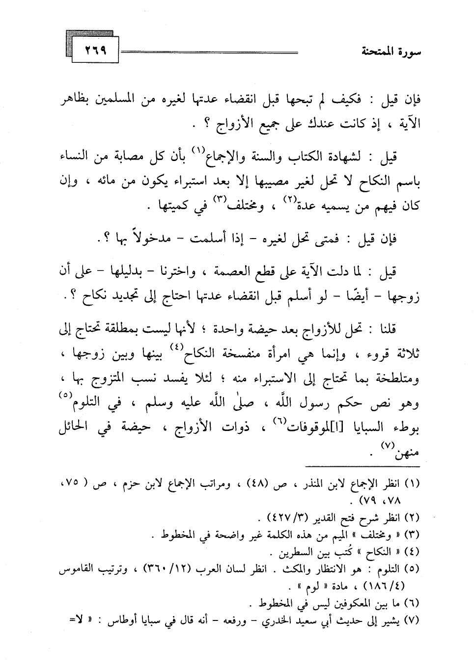 بوطء السبايا الموقوفات، ذوات الأزواج، حيضة في الحائل منهن.