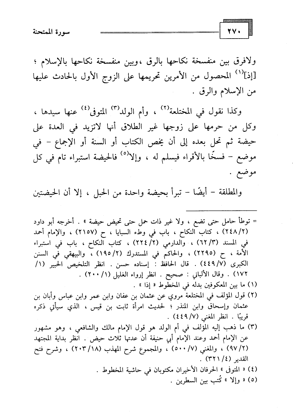 والمطلقة -أيضاً - تبرأ بحيضة واحدة من الحبل، إلا أن الحيضتين