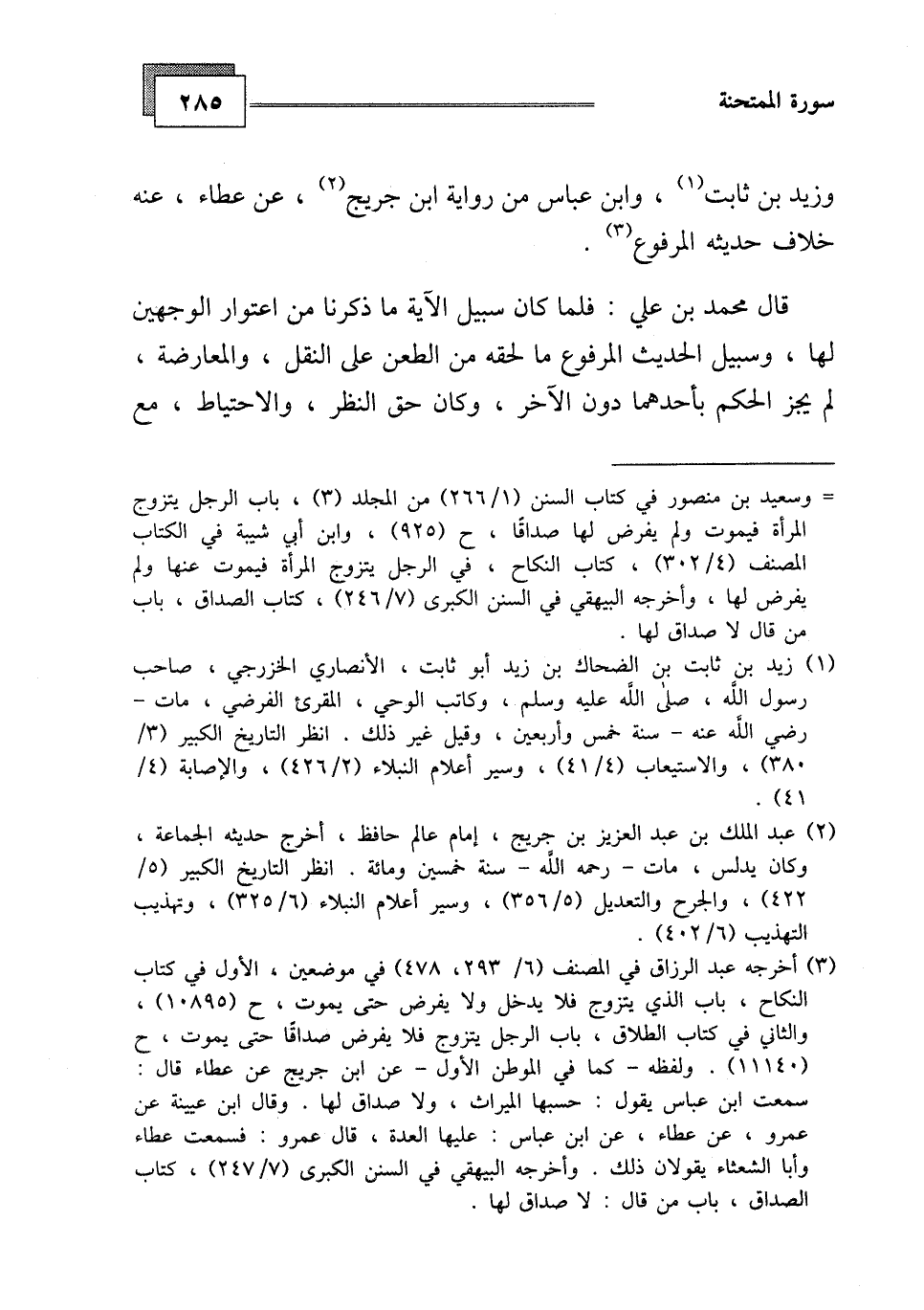 قال محمد بن علي: فلما كان سبيل الآية ما ذكرنا عن اعتوار الوجهين