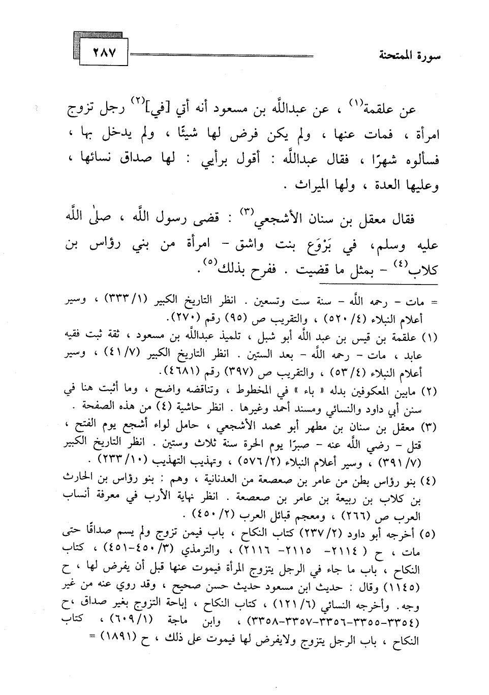 فقال معقل بن سنان الأشجعي: قضى رسول الله، صلى اللَّه عليه وسلم، في بَرْوَع بنت واشق - امرأة من بني رؤاس بن