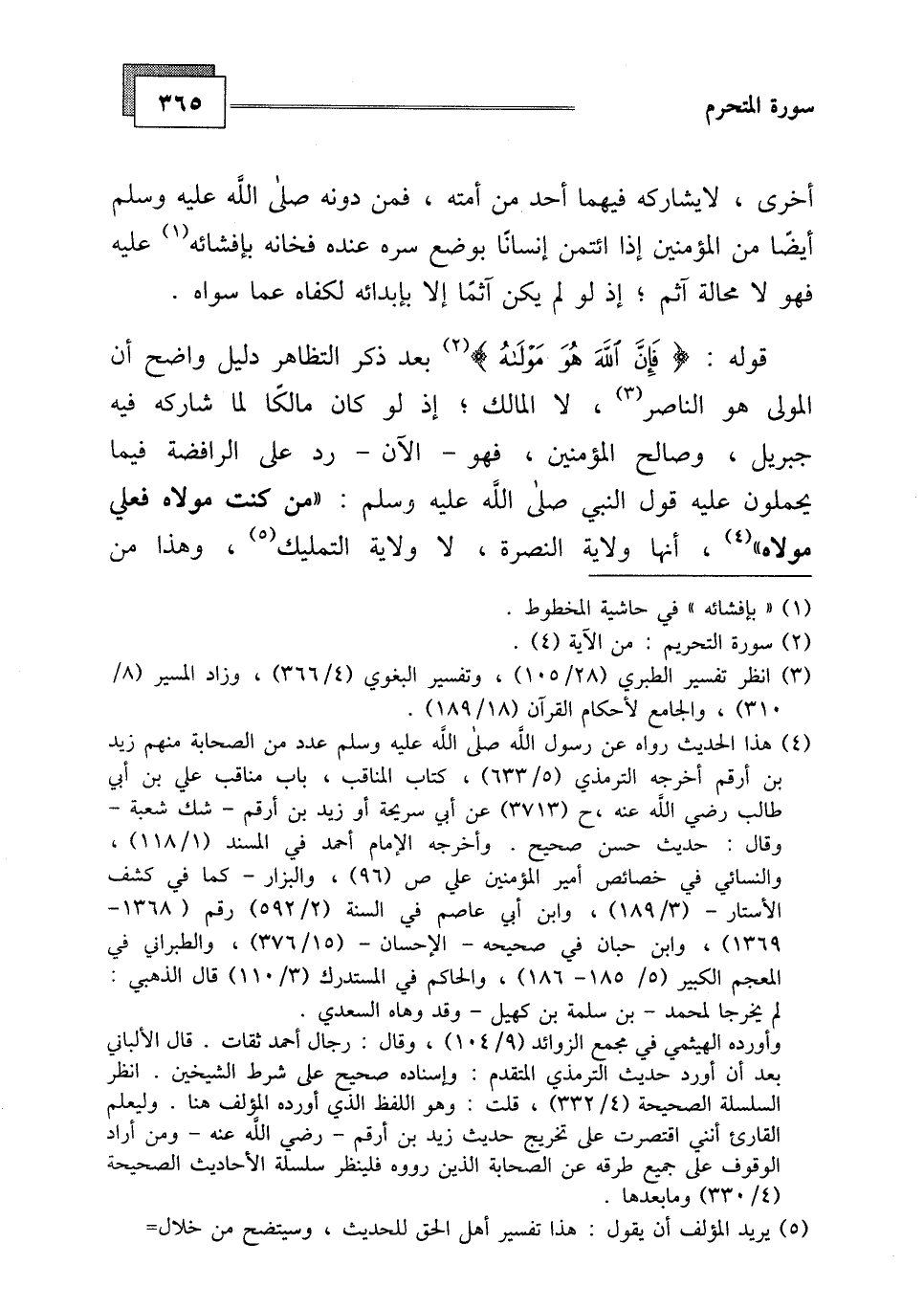 جبريل، وصالح المؤمنين، فهو - الآن - رد على الرافضة فيما