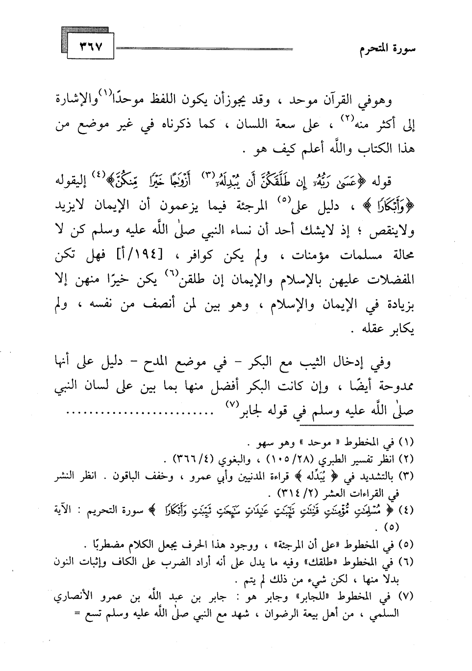 محالة مسلمات مؤمنات، ولم يكن كوافر، فهل تكن المفضلات عليهن بالإسلام والإيمان إن طلقن يكن خيرًا منهن إلا بزيادة في الإيمان والإسلام، وهو بين لمن أنصف من نفسه، ولم يكابر عقله.