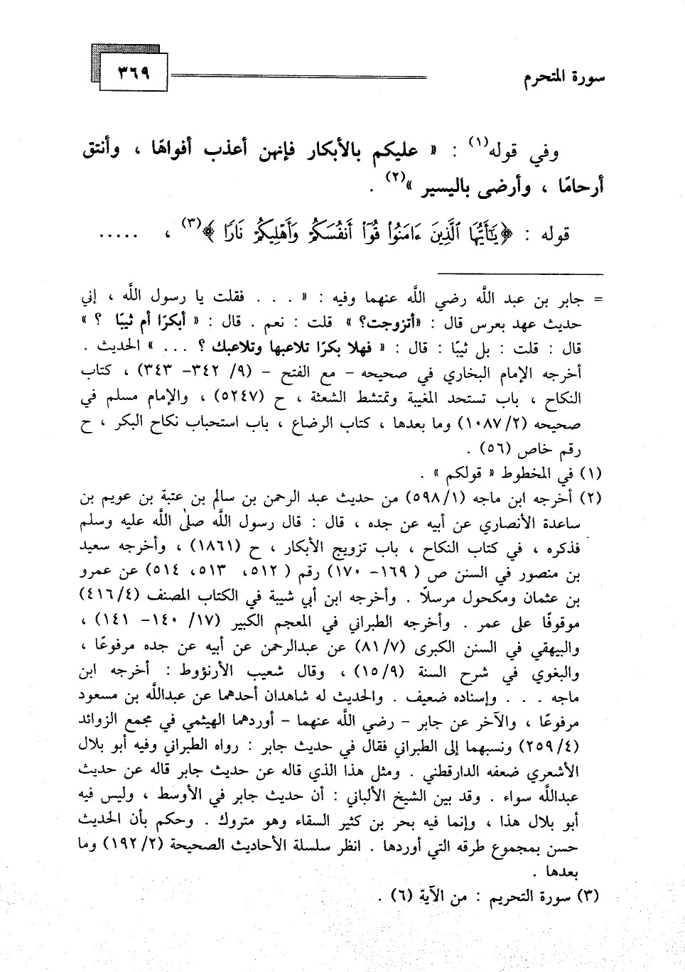 وفي قوله: (عليكم بالأبكار فإنهن أعذب أفواهًا، وأنتق أرحامًا، وأرضى باليسير ".