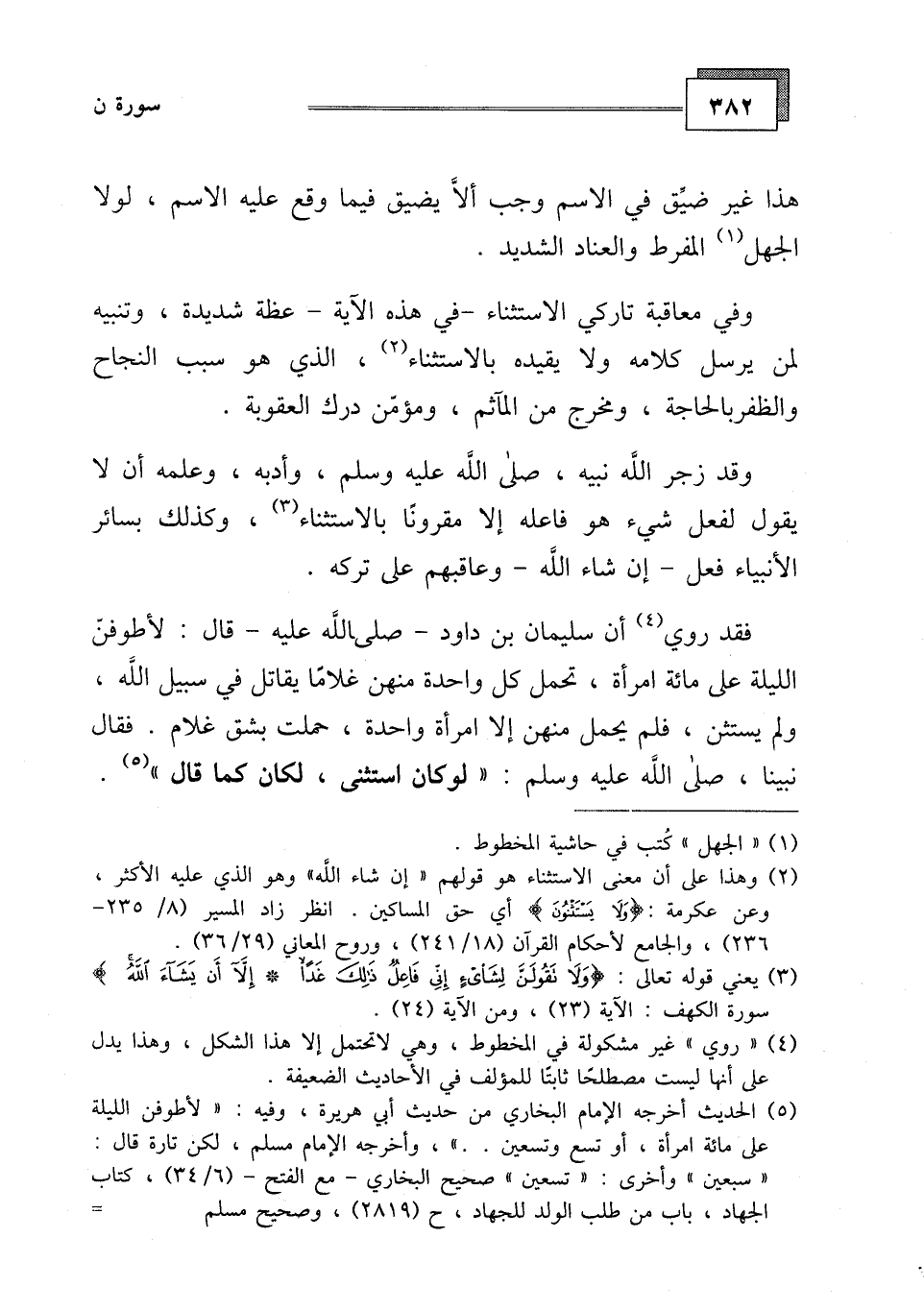 نبينا، صلى الله عليه وسلم: " لوكان استثنى، لكان كما قال ".