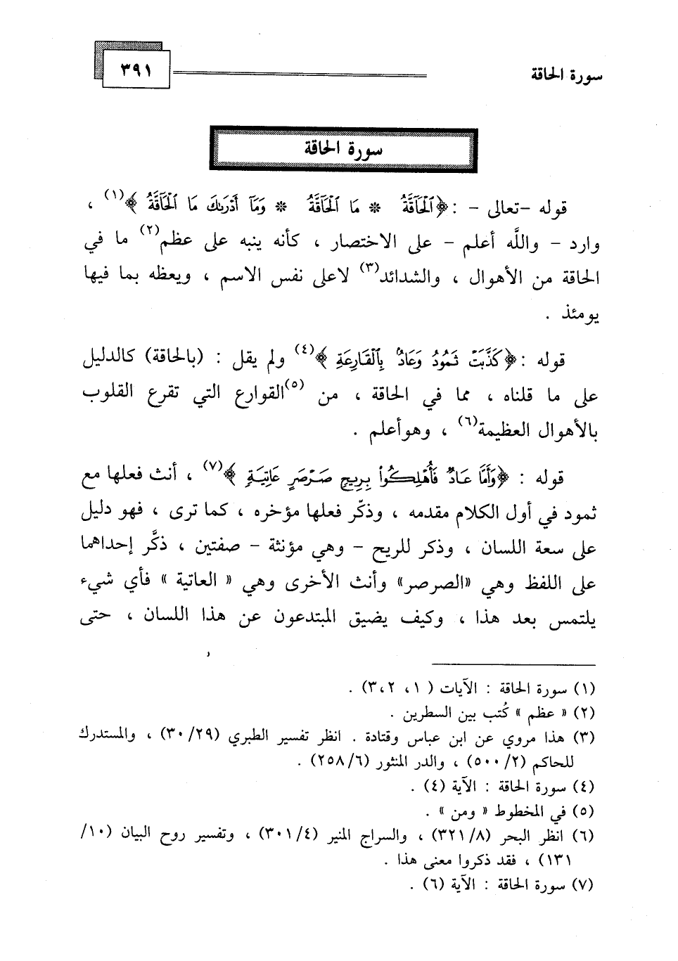 قوله - تعالى -: (الْحَاقَّةُ (1) مَا الْحَاقَّةُ (2) وَمَا أَدْرَاكَ مَا الْحَاقَّةُ (3) .