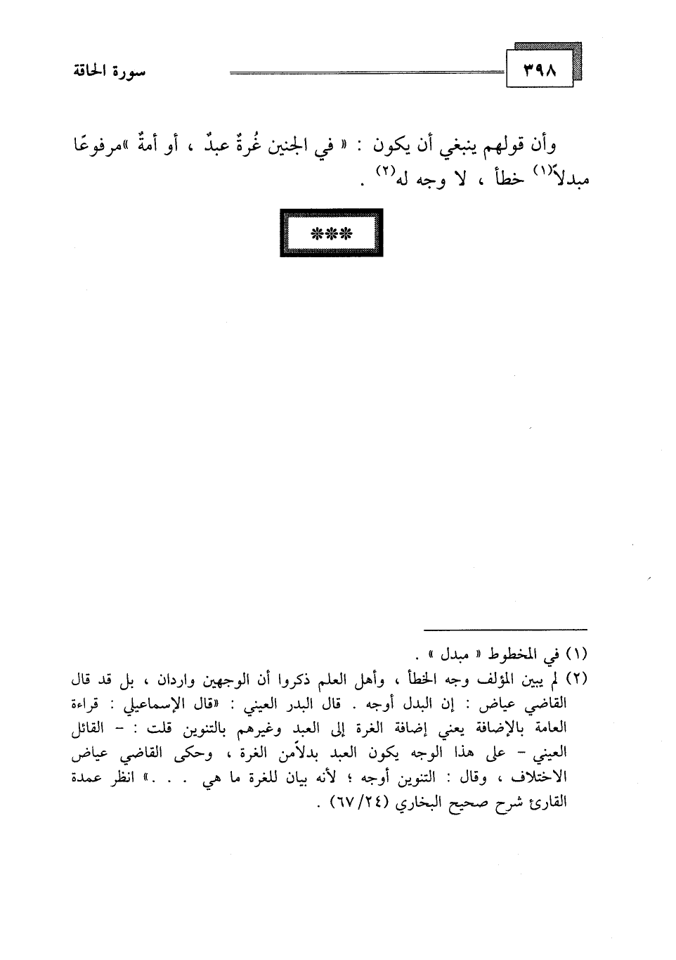 وأن قولهم ينبغي أن يكون: " في الجنين غُرة عبدٌ، أو أمةٌ "مرفوعًا