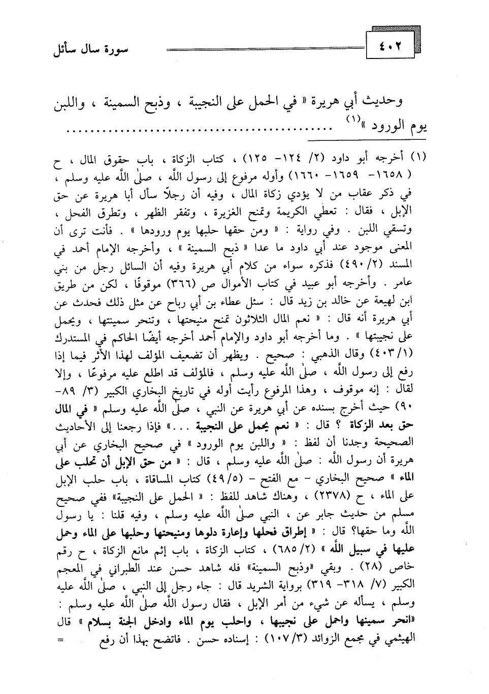 وحديث أبي هريرة " في الحمل على النجيبة، وذبح السمينة، واللبن