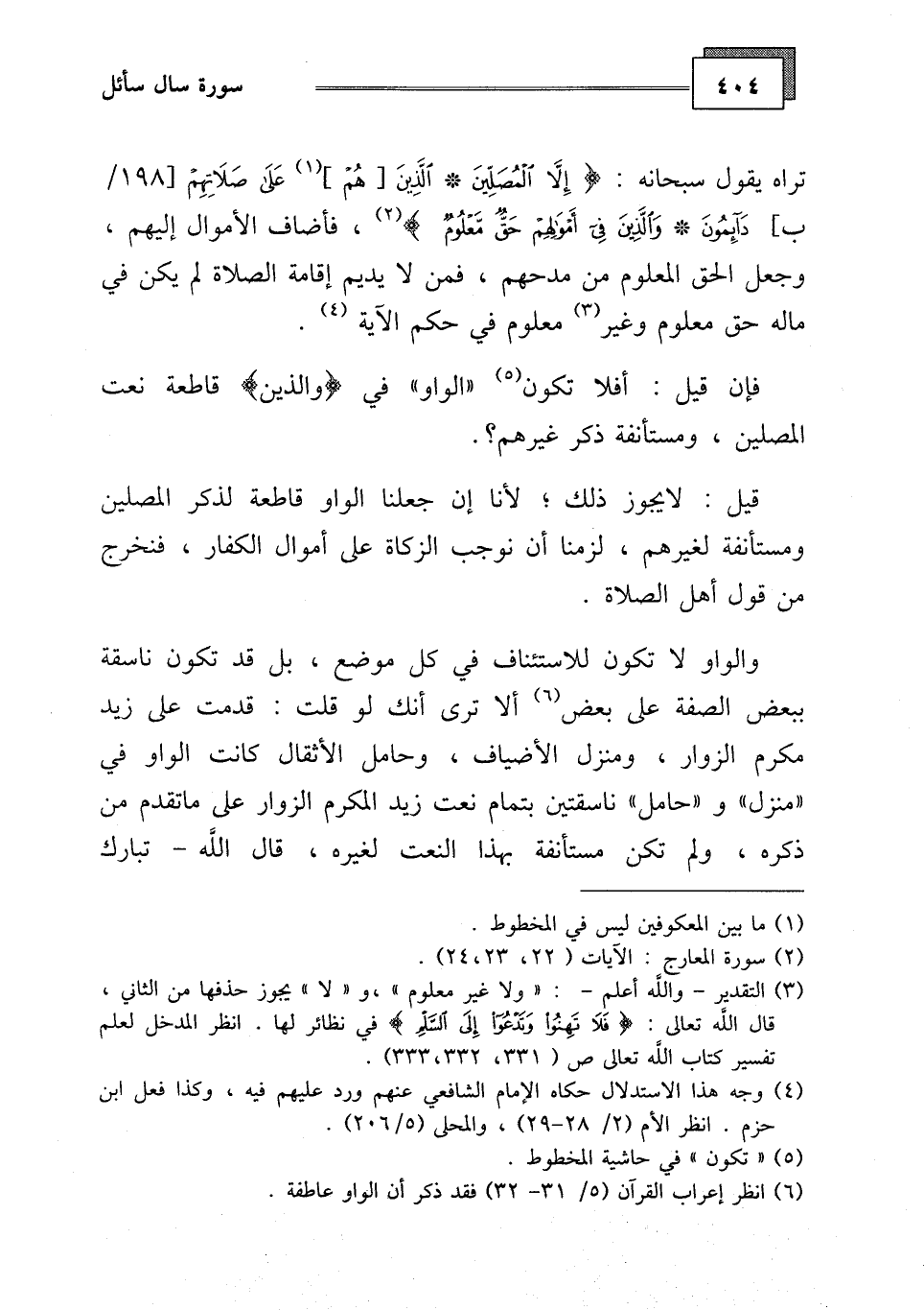 فإن قيل: أفلا تكون "الواو" في (والذين) قاطعة نعت المصلين، ومستأنفة ذكر غيرهم؟.