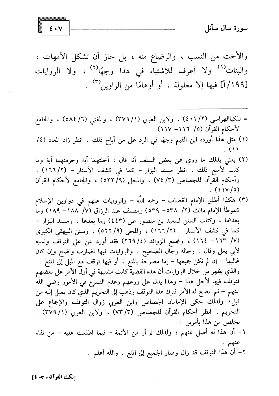 والبنات ولا أعرف للاشتباه في هذا وجهًا، ولا الروايات فيها إلا معلولة، أو أوهامًا من الراوين.