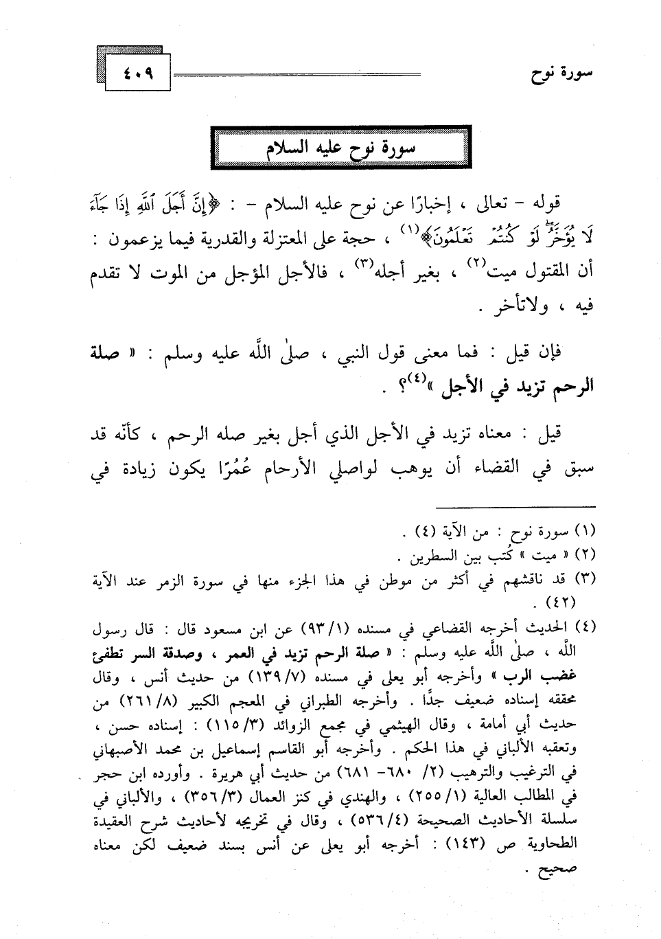 قوله - تعالى، إخبارًا عن نوح عليه السلام -: (إِنَّ أَجَلَ اللَّهِ إِذَا جَاءَ لَا يُؤَخَّرُ لَوْ كُنْتُمْ تَعْلَمُونَ (4) .