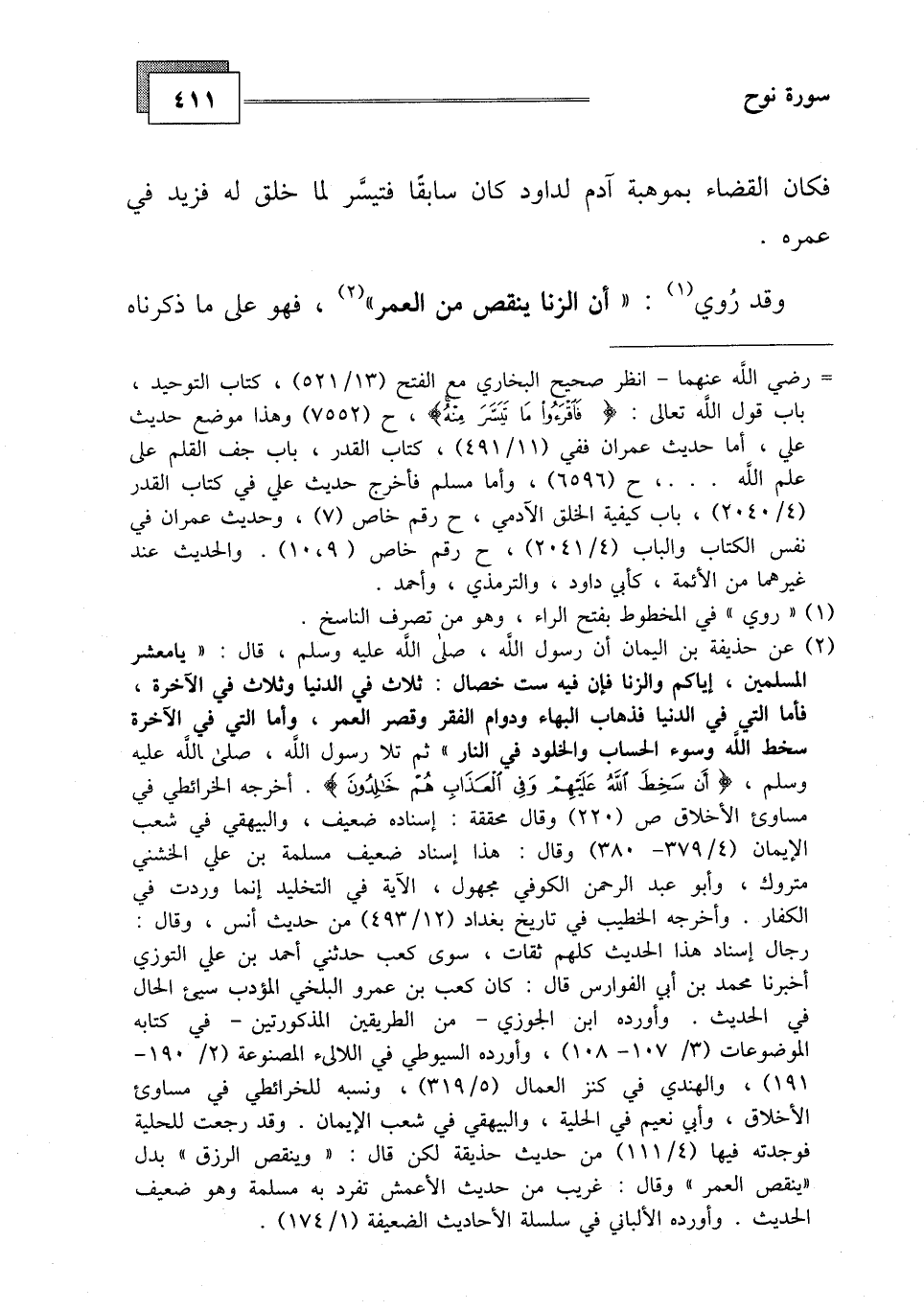 وقد رُوي: " أن الزنا ينقص من العمر"، فهو على ما ذكرناه.