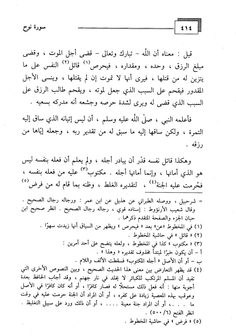 وهكذا قاتل نفسه قدّر أن يبادر أجله، ولم يعلم أن فعله بنفسه ليس