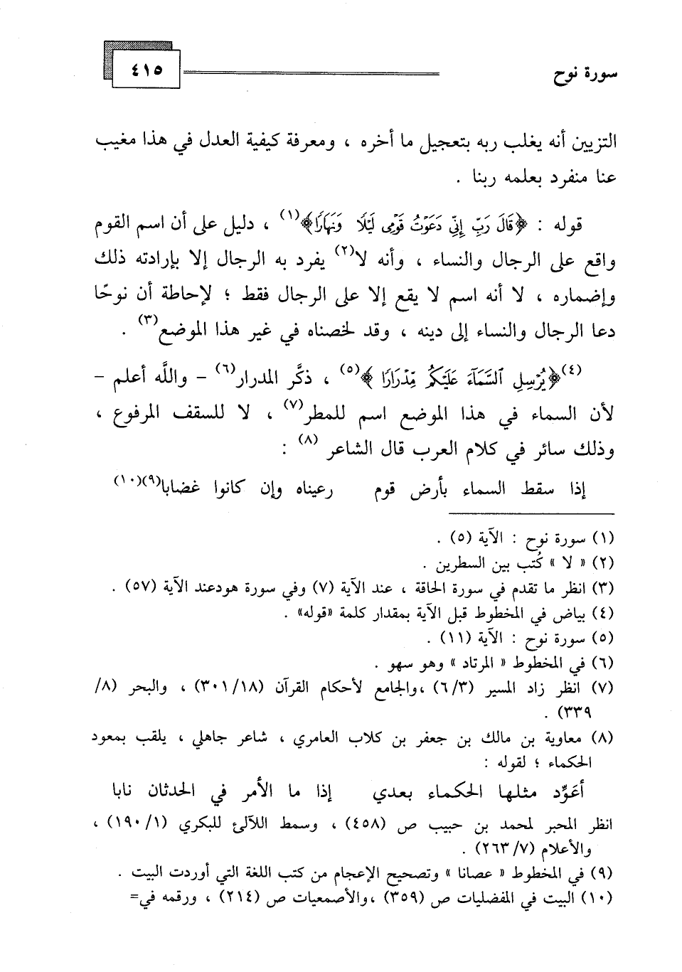 قوله: (قَالَ رَبِّ إِنِّي دَعَوْتُ قَوْمِي لَيْلًا وَنَهَارًا (5) .