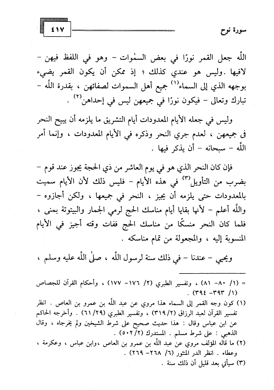الله جعل القمر نوراً في بعض السموات - وهو فى اللفظ فيهن -